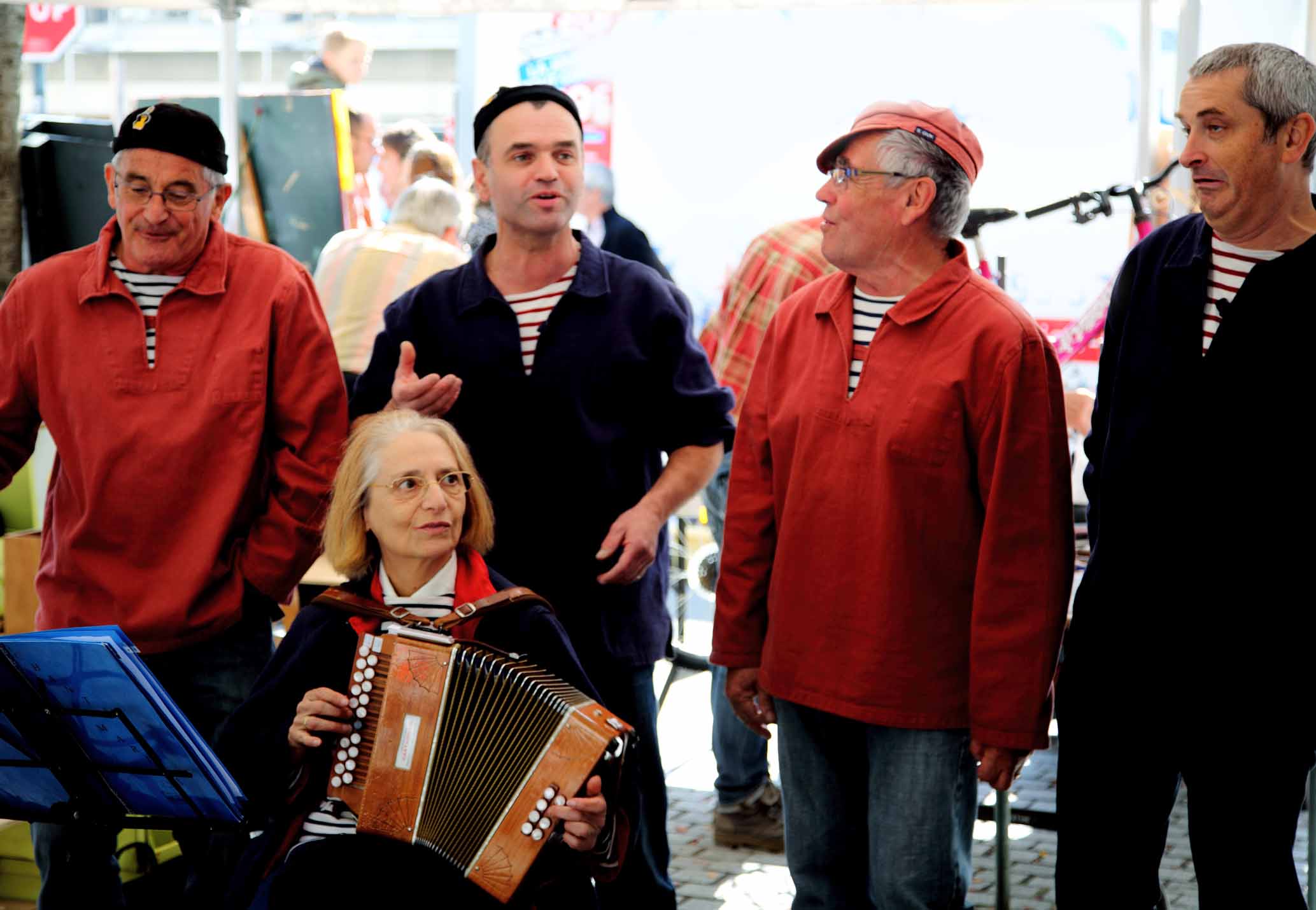 Sous un beau soleil d'automne, les Gars de Vaugon ont chanté en divers lieux de la braderie Saint Helier.